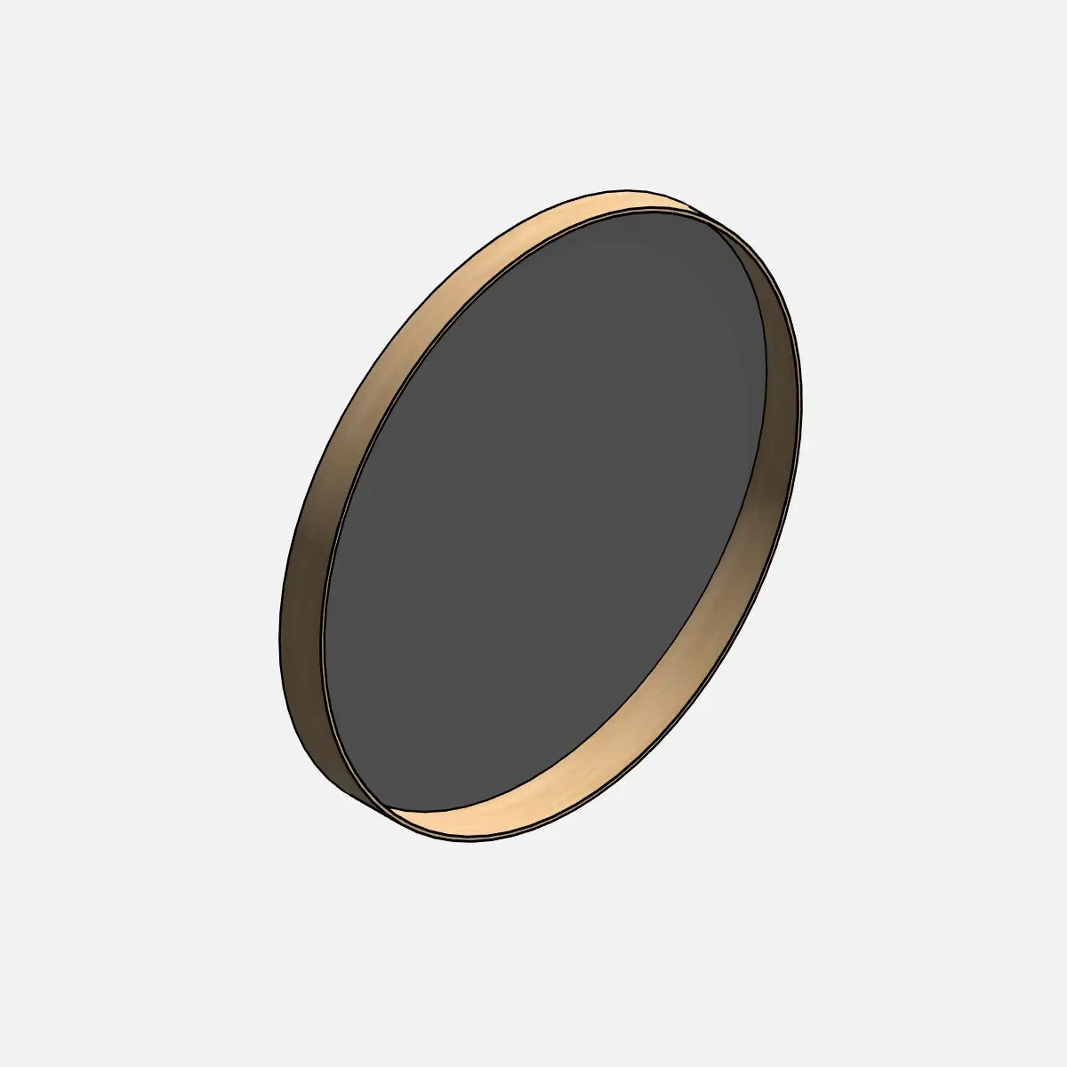 Espejo circular de estilo escandinavo con diseño lineal, perfecto para proyectos residenciales modernos y minimalistas. El marco es más profundo en la parte inferior, formando un pequeño estante.