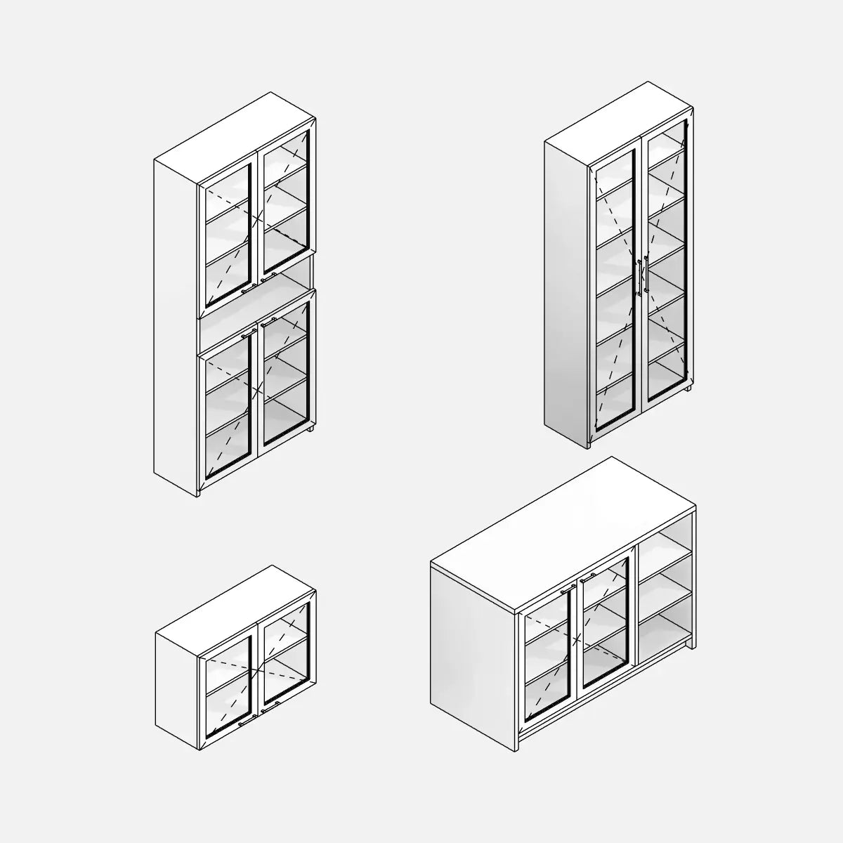 4 scaffali per sala da pranzo in stile scandinavo, perfetti per progetti residenziali moderni e minimalisti.
